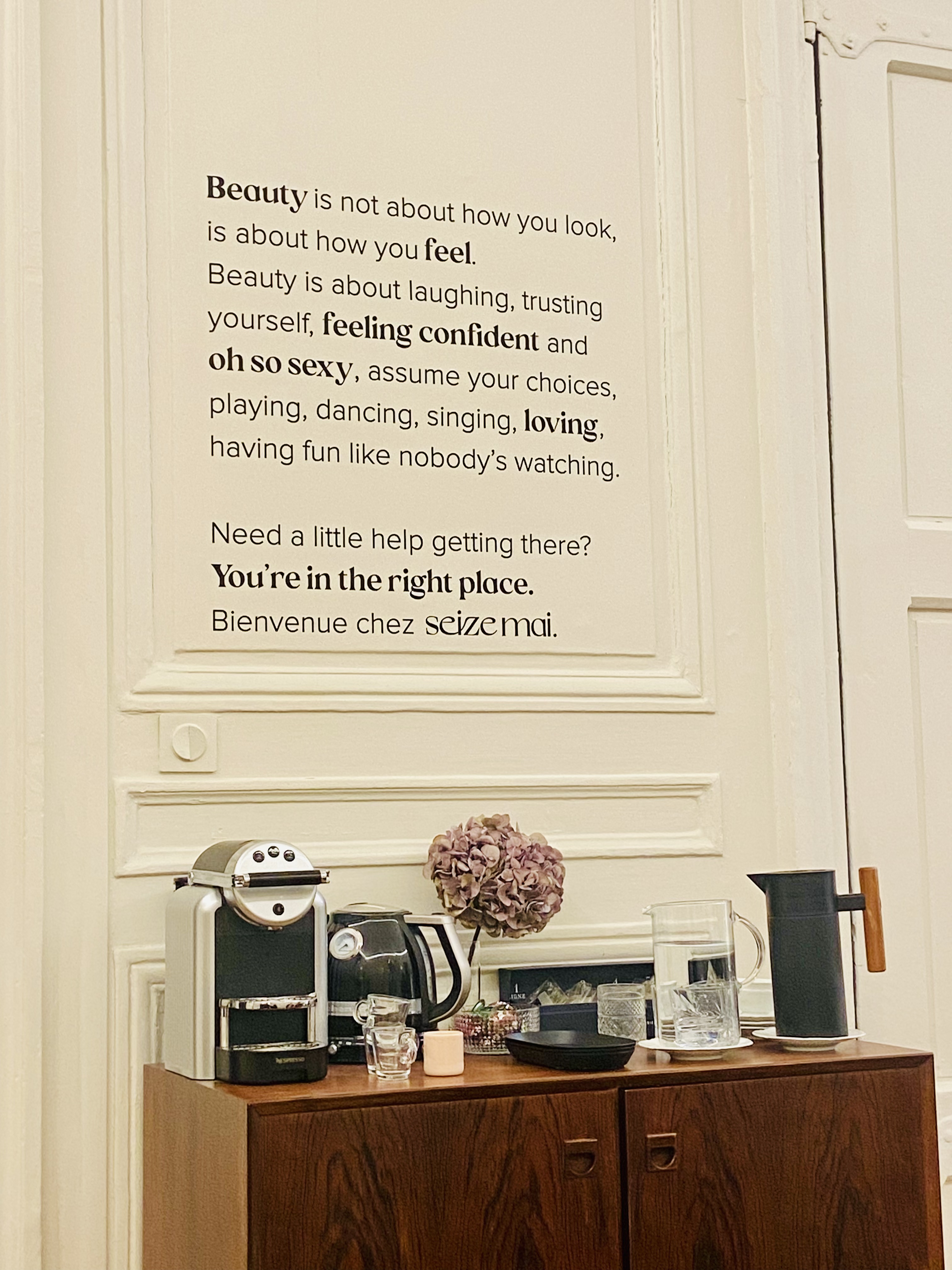Quand on arrive chez seize mai, on dépose son sac, son manteau et ses problèmes à l’entrée puis on laisse nos hôtes s’occuper du reste. Je suis allé dans l’institut pour un massage corps : on se déshabille, on se met sous la couverture, on profite de la bonne odeur de fleur d’oranger, de la petite musique et on se laisse bichonner pendant 1h. Tout ça dans des locaux décorés avec goût, où l’on se sent comme chez soi. Merci Seize Mai (et merci Aurelia pour le soin) j’ai hâte de recommencer!